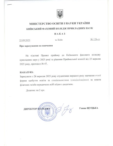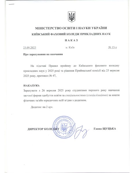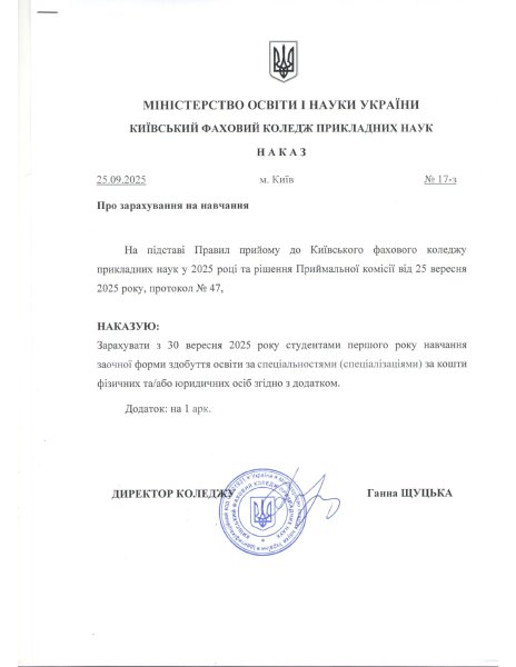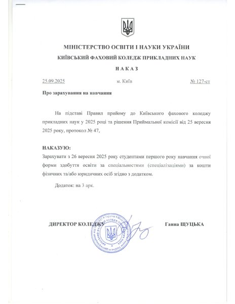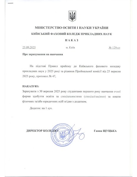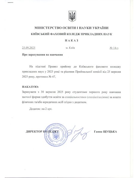 За кошти фізичних та юридичних осіб (контракт І рік навчання на основі ОКР кваліфікованого робітника) ДЕННА ФОРМА ЗДОБУТТЯ ОСВІТИ D3 МЕНЕДЖМЕНТ D1 ОБЛІК І ОПОДАТКУВАННЯ G15 ТЕХНОЛОГІЇ ЛЕГКОЇ ПРОМИСЛОВОСТІ (Взуття та аксесуари) G15 ТЕХНОЛОГІЇ ЛЕГКОЇ ПРОМИСЛОВОСТІ (Швейні вироби) ЗАОЧНА ФОРМА ЗДОБУТТЯ ОСВІТИ G15 ТЕХНОЛОГІЇ ЛЕГКОЇ ПРОМИСЛОВОСТІ (Взуття та аксесуари) За кошти фізичних та юридичних осіб (додатковий набір) На основі БСО 9 класів)І СЕСІЯ ДОДАТКОВОГО НАБОРУ D3 МЕНЕДЖМЕНТ I10 СОЦІАЛЬНА РОБОТА ТА КОНСУЛЬТУВАННЯ G15 ТЕХНОЛОГІЇ ЛЕГКОЇ ПРОМИСЛОВОСТІ ІІ СЕСІЯ ДОДАТКОВОГО НАБОРУ B2 ДИЗАЙН (Дизайн одягу та трикотажних виробів) B2 ДИЗАЙН (Графічний дизайн) На основі ПЗСО 11 класів) І СЕСІЯ ДОДАТКОВОГО НАБОРУ ДЕННА B2 ДИЗАЙН (Графічний дизайн) D3 МЕНЕДЖМЕНТ D1 ОБЛІК І ОПОДАТКУВАННЯ ЗАОЧНА B2 ДИЗАЙН (Дизайн одягу та трикотажних виробів) G15 ТЕХНОЛОГІЇ ЛЕГКОЇ ПРОМИСЛОВОСТІ (Взуття та аксесуари) G15 ТЕХНОЛОГІЇ ЛЕГКОЇ ПРОМИСЛОВОСТІ (Швейні вироби) На основі ОКР кваліфікованого робітника) І СЕСІЯ ДОДАТКОВОГО НАБОРУ ДЕННА I10 СОЦІАЛЬНА РОБОТА ТА КОНСУЛЬТУВАННЯ G15 ТЕХНОЛОГІЇ ЛЕГКОЇ ПРОМИСЛОВОСТІ (Взуття та аксесуари) На основі НРК5) І СЕСІЯ ДОДАТКОВОГО НАБОРУ ЗАОЧНА G15 ТЕХНОЛОГІЇ ЛЕГКОЇ ПРОМИСЛОВОСТІ (Взуття та аксесуари) G15 ТЕХНОЛОГІЇ ЛЕГКОЇ ПРОМИСЛОВОСТІ (Швейні вироби)