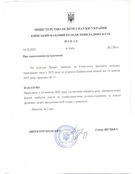За кошти фізичних та юридичних осіб (контракт І рік навчання на основі ОКР кваліфікованого робітника) ДЕННА ФОРМА ЗДОБУТТЯ ОСВІТИ D3 МЕНЕДЖМЕНТ D1 ОБЛІК І ОПОДАТКУВАННЯ G15 ТЕХНОЛОГІЇ ЛЕГКОЇ ПРОМИСЛОВОСТІ (Взуття та аксесуари) G15 ТЕХНОЛОГІЇ ЛЕГКОЇ ПРОМИСЛОВОСТІ (Швейні вироби) ЗАОЧНА ФОРМА ЗДОБУТТЯ ОСВІТИ G15 ТЕХНОЛОГІЇ ЛЕГКОЇ ПРОМИСЛОВОСТІ (Взуття та аксесуари) За кошти фізичних та юридичних осіб (додатковий набір) На основі БСО 9 класів)І СЕСІЯ ДОДАТКОВОГО НАБОРУ D3 МЕНЕДЖМЕНТ I10 СОЦІАЛЬНА РОБОТА ТА КОНСУЛЬТУВАННЯ G15 ТЕХНОЛОГІЇ ЛЕГКОЇ ПРОМИСЛОВОСТІ ІІ СЕСІЯ ДОДАТКОВОГО НАБОРУ B2 ДИЗАЙН (Дизайн одягу та трикотажних виробів) B2 ДИЗАЙН (Графічний дизайн) На основі ПЗСО 11 класів) І СЕСІЯ ДОДАТКОВОГО НАБОРУ ДЕННА B2 ДИЗАЙН (Графічний дизайн) D3 МЕНЕДЖМЕНТ D1 ОБЛІК І ОПОДАТКУВАННЯ ЗАОЧНА B2 ДИЗАЙН (Дизайн одягу та трикотажних виробів) G15 ТЕХНОЛОГІЇ ЛЕГКОЇ ПРОМИСЛОВОСТІ (Взуття та аксесуари) G15 ТЕХНОЛОГІЇ ЛЕГКОЇ ПРОМИСЛОВОСТІ (Швейні вироби) ІІ СЕСІЯ ДОДАТКОВОГО НАБОРУ G15 ТЕХНОЛОГІЇ ЛЕГКОЇ ПРОМИСЛОВОСТІ (Взуття та аксесуари) На основі ОКР кваліфікованого робітника) І СЕСІЯ ДОДАТКОВОГО НАБОРУ ДЕННА I10 СОЦІАЛЬНА РОБОТА ТА КОНСУЛЬТУВАННЯ G15 ТЕХНОЛОГІЇ ЛЕГКОЇ ПРОМИСЛОВОСТІ (Взуття та аксесуари) ІІ СЕСІЯ ДОДАТКОВОГО НАБОРУ G15 ТЕХНОЛОГІЇ ЛЕГКОЇ ПРОМИСЛОВОСТІ (Взуття та аксесуари) На основі НРК5) І СЕСІЯ ДОДАТКОВОГО НАБОРУ ЗАОЧНА G15 ТЕХНОЛОГІЇ ЛЕГКОЇ ПРОМИСЛОВОСТІ (Взуття та аксесуари) G15 ТЕХНОЛОГІЇ ЛЕГКОЇ ПРОМИСЛОВОСТІ (Швейні вироби)