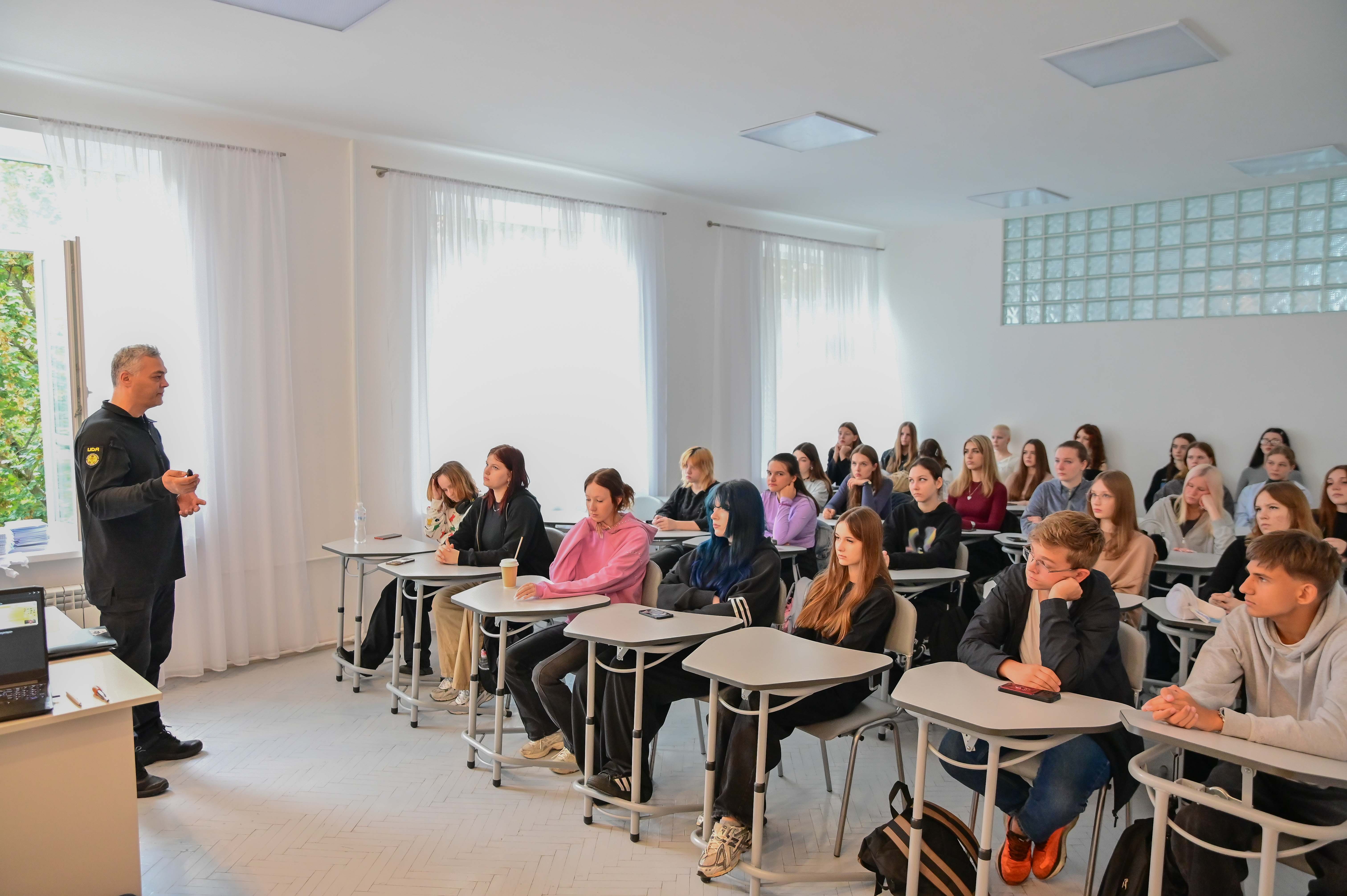 On September 17, regular mine safety classes were held at KCAS with the support of the Department of Education and Science of the Kyiv City State Administration. The lecture was given by Igor and Oksana Riznichenko. During the meeting, the students got acquainted with the types of explosives, learned about the procedure for their detection, and received information about the legislative norms that regulate the rules for handling such items. At the end, each participant was given illustrated materials with additional explanations. It should be noted that the initiative to conduct mine safety classes is implemented with the support of the NGO "Association of Mine Operators of Ukraine" and within the framework of the Demining Solutions project, which is carried out by order of the United Nations Development Program in Ukraine. Such classes are held at KCAS not for the first time. After all, the goal of the project is to familiarize all students with the rules for handling explosives, which is extremely important in war conditions.