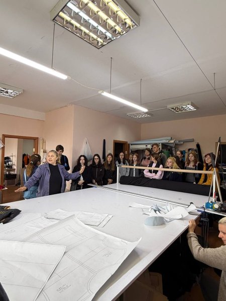 On September 24, 2025, students of the specialty G15 Light Industry Technologies of the educational and professional program Sewing Products, group LPSh-1-24, held a field trip in the educational integrated discipline of Product Technology on the basis of the sewing enterprise LLC “EKSO GROUP”. The event was held under the leadership of the head of educational and production practice, Nadiya Fadeeva and translator-typologist Natalia Gorodnaya. The excursion for College students was conducted by the production manager, Inna Oliynyk, who familiarized visitors with modern technological processes, features of production organization and requirements for professional training of specialists. A particularly pleasant moment was the fact that graduates of the same specialty work at the enterprise, who shared their own experience of professional development and inspired younger colleagues to confidently advance along their career path. At the end of the excursion, Ms. Inna presented KCAS students with fabrics for making T-shirts that will be used during the internship, as well as patriotic chevrons - a symbol of unity and faith in the future of the Ukrainian TCLF industry. Such meetings are not only a valuable source of knowledge, but also an important step towards the formation of professional identity, the development of partnerships between education and production, as well as motivation for creative work. We express our sincere gratitude to Ms. Inna Oliynyk for the warm welcome, meaningful excursion, wonderful gifts and sincere support of young specialists. We wish the enterprise “EKSO GROUP” prosperity, sustainable development, and increased achievements! Thanks for your contribution to nurturing a new generation of TCLF industry masters!