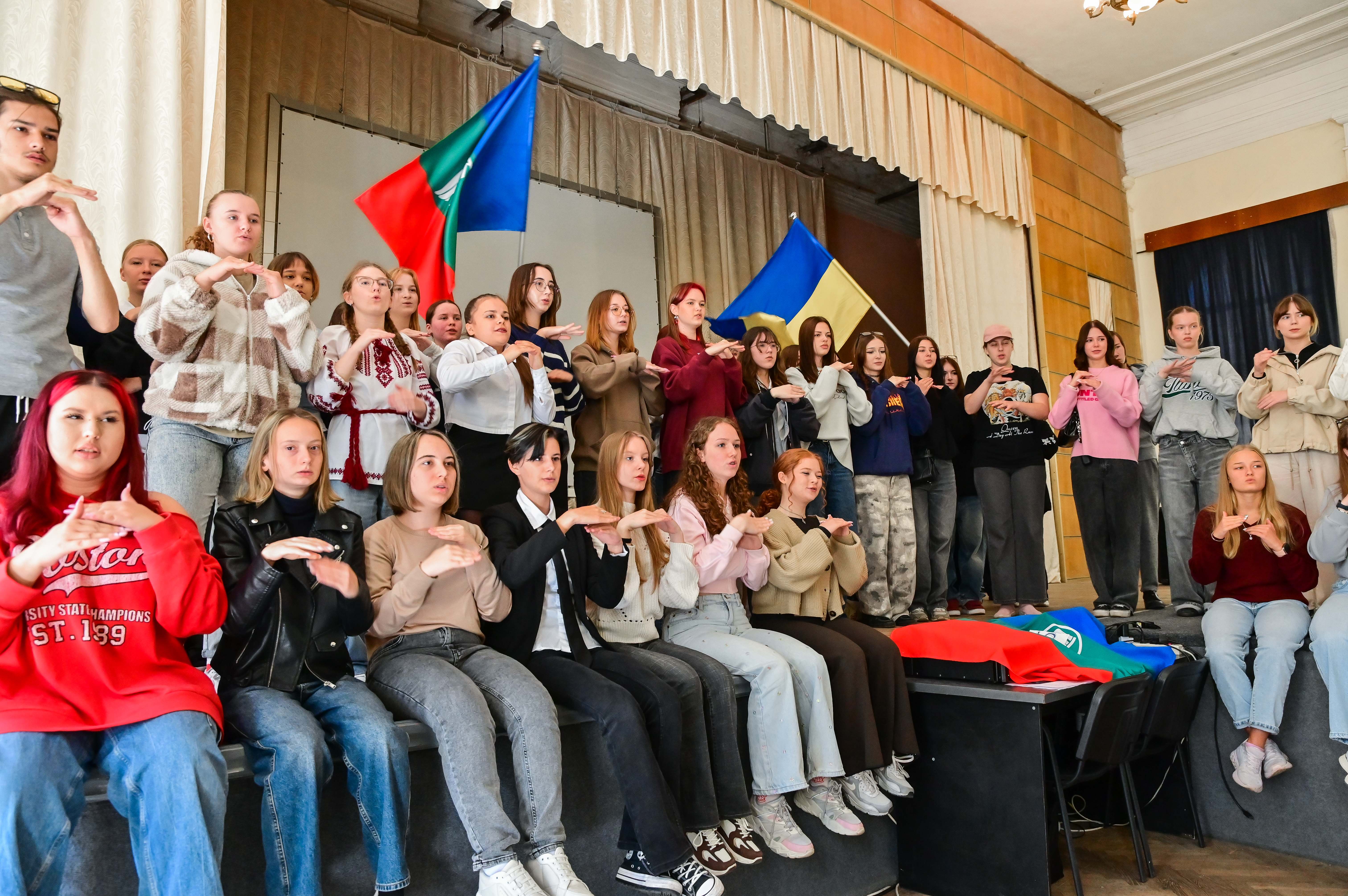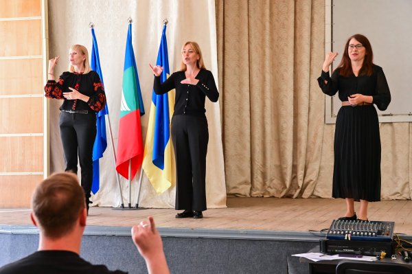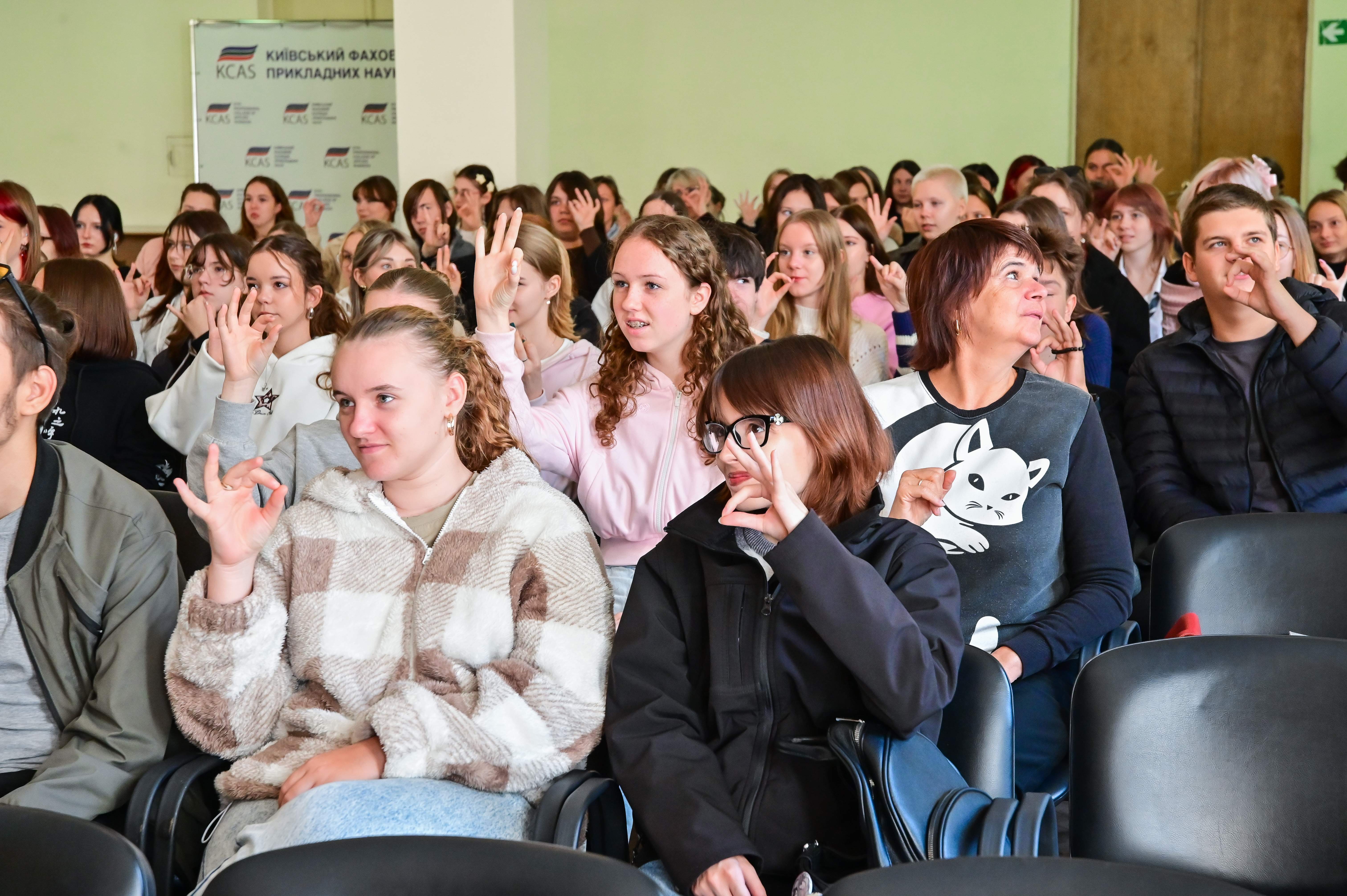 On September 26, 2025, students, teachers, and sign language interpreters of the college participated in the All-Ukrainian Challenge “Youth Sings”. The event was held as part of the International Week of the Deaf. The determining condition for participation was the performance of a song in Ukrainian sign language. The students of our College chose the legendary “Oi u luzi chervona kalyna”. The challenge was attended by 2nd and 4th-year College students, and sign language interpreters - Oksana Tereshchenko, Iryna Skolotova, Larysa Bondarenko, Yulia Porplik, Liliya Hlynyana, Natalia Novak, Natalia Yatsola, and Iryna Dudnik - helped them perform the song. The song “Oi u luzi chervona kalyna” was sung in sign language from the stage of the сollege’s assembly hall, because, due to the large number of participants, the performance became perhaps the most massive within the framework of this year’s challenge. We thank all the participants, the College’s translators, and once again, we congratulate you on the International Week of the Deaf!