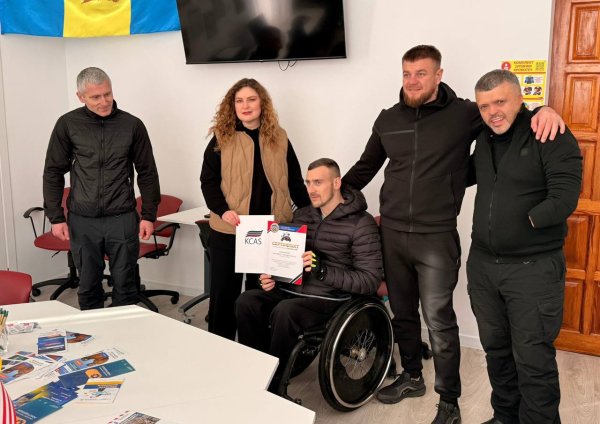Центр ветеранського розвитку KCAS підтримав благодійну ініціативу1 лютого 2026 року у Центрі ветеранського розвитку KCAS відбулася особлива зустріч ветеранів. Головна мета івенту - передача електроскутера Тимофію, який пересувається на кріслі колісному. Пан Тимофій - ветеран війни, спортсмен, учасник міжнародного спортивного заходу з адаптивних видів спорту серед ветеранів та військовослужбовців “Ігри Нескорених”. Благодійна акція відбулася за підтримки ГО “Українська ліга військових волонтерів”, EDG GROUP та Київської обласної ради. Цей подарунок значно поліпшить мобільність Тимофія, допоможе йому активніше брати участь у заняттях зі спорту та реабілітаційних заходах. Пан Тимофій - взірець незламності і сили волі. Попри важке поранення, він продовжує займатися спортом і власним прикладом надихає багатьох ветеранів. Центр ветеранського розвитку KCAS і надалі активно підтримуватиме ветеранів через адаптивний спорт, освіту, психологічну допомогу та практичні ініціативи для покращення якості життя.